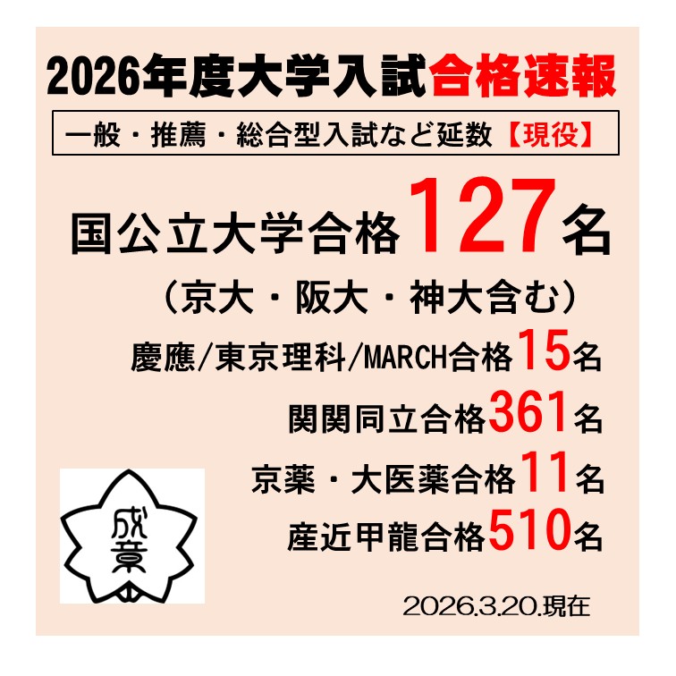 京都成章高等学校は、全日制課程の大学進学を目指した高校としてこれまで多くの卒業生を大学へと輩出してきました。 そして2014年4月、本校の母体である学校法人明徳学園の創立100周年に向けた記念事業の一つとして、現役で大学進学を目指すための通信制課程を併設しました。
