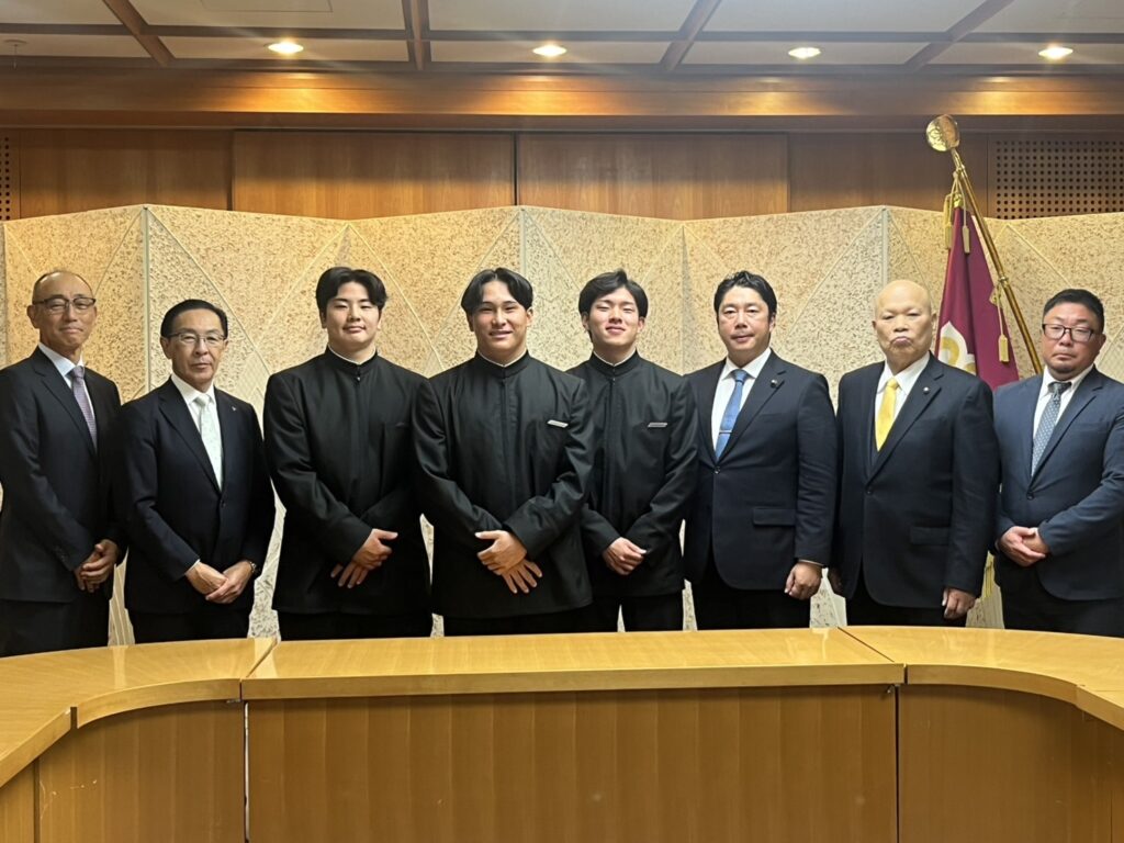 全国高校ラグビー大会に出場する本校男子ラグビー部が京都府庁と毎日新聞社京都支局を訪問し、全国大会への出場を報告しました。