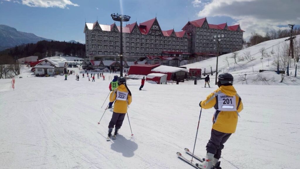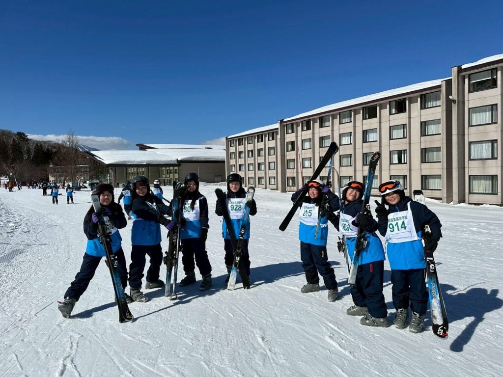 よい天気に恵まれ、1・2年生ともに、インストラクターの先生に付いてもらって、元気にスキー講習を始めました。